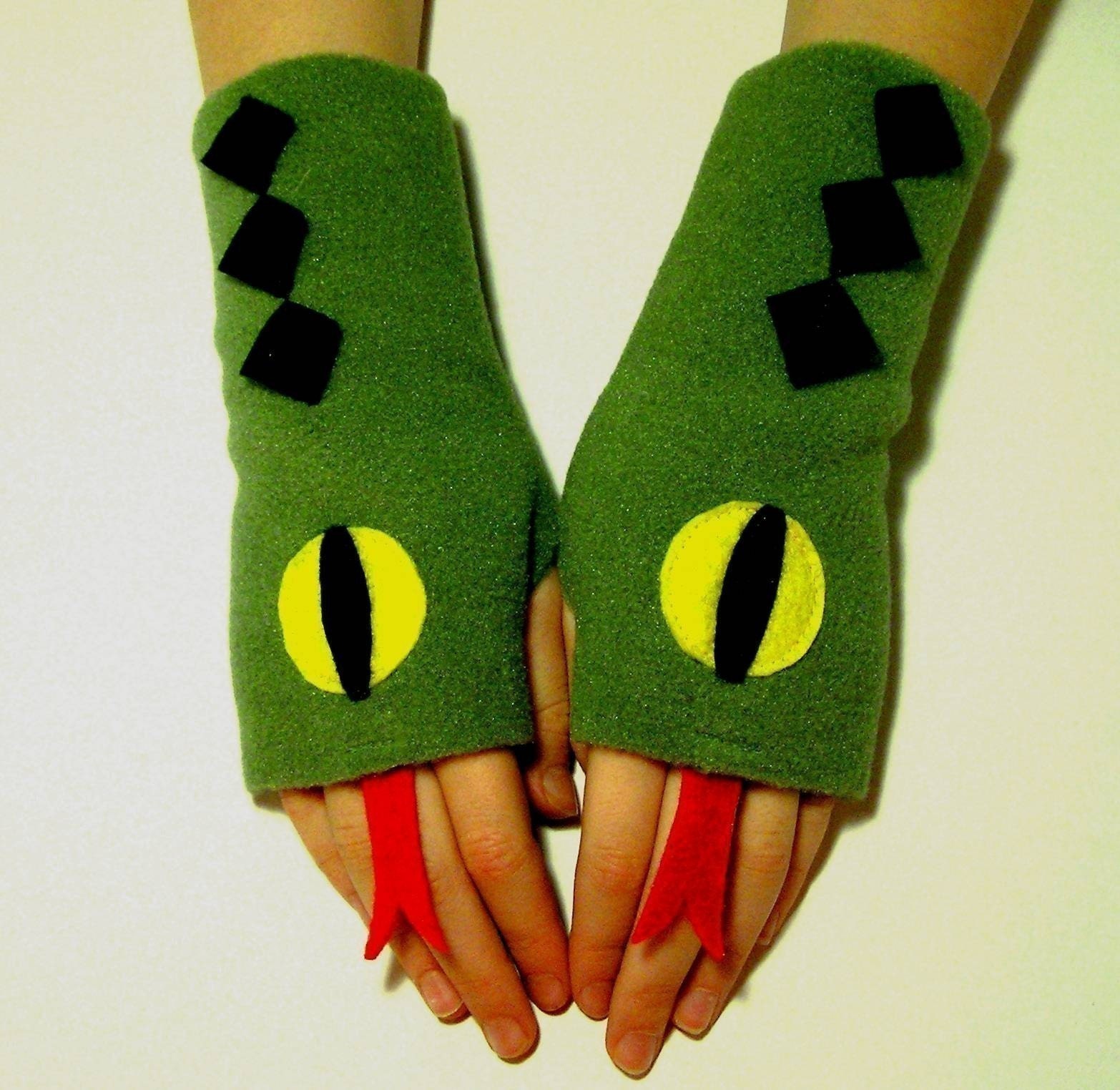 Fleece Fingerless Gloves for ADULTS - Snakes (Ladies or Mens size S - XL